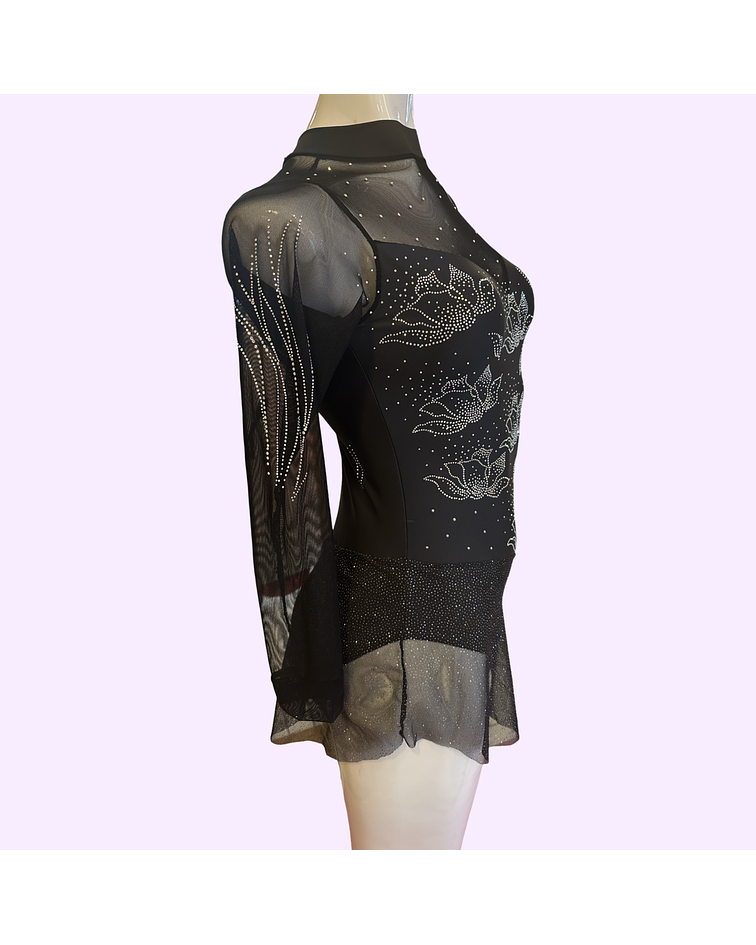 Malla confecciobada en lycra negra y transparencia