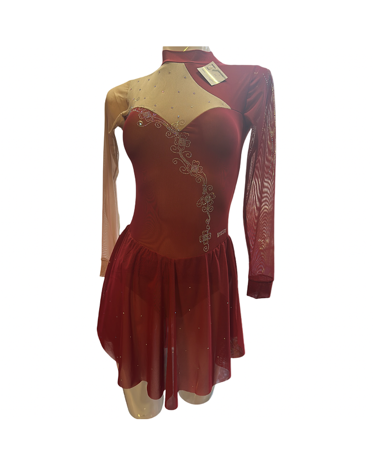 Malla confeccionada con transparencias color vino y piel