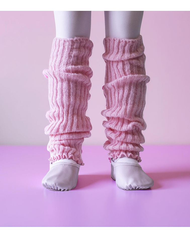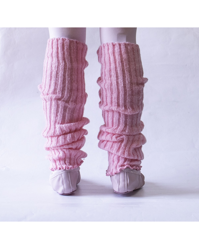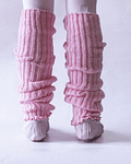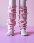 Polainas Tejidas: rosadas y negras, lana acrilica,  acanaladas, tamaño infantil, 35 cm de alto